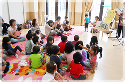 病児は、「みんなのいる保育室に戻りたい」という「孤立感」や「さみしさ」が出てきます。看護師と保育士が一体となり、音楽を奏でるなど、心身共に上手にフォローし保育することで、健康に戻るサポートを行います。